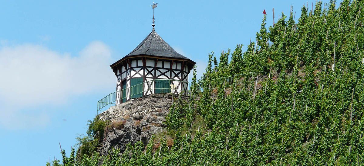 Direkt vor dem Haus beginnt der Collis-Rundwanderweg -- Dieser führt Sie hinauf zum Collis Turm, in die Weinberge und auch zur Heimat der Zeller „Schwarzen Katz".