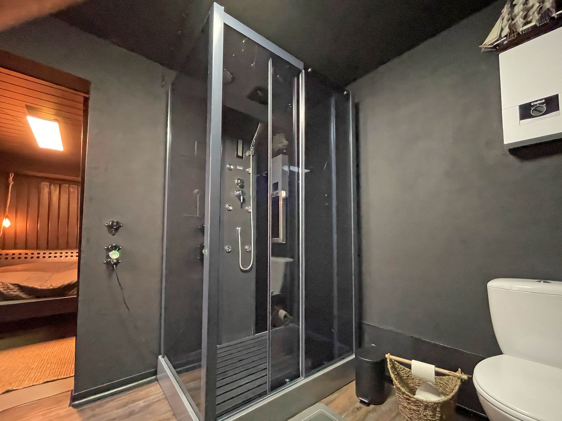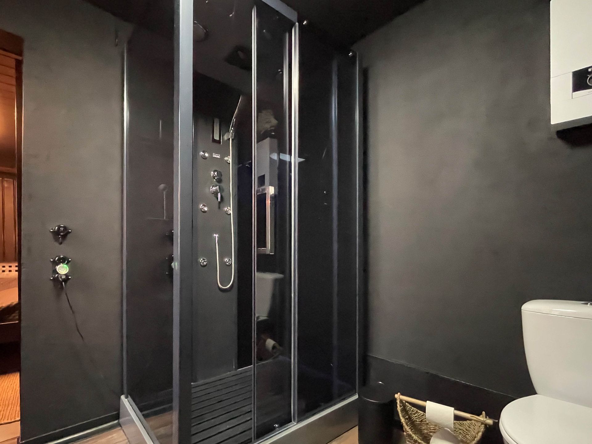 Der separate Eingang des Apartments befindet sich im Erdgeschoss. Dort finden Sie ein Wohnschlafzimmer mit Smart TV, die Küche und ein Badezimmer.